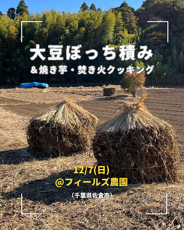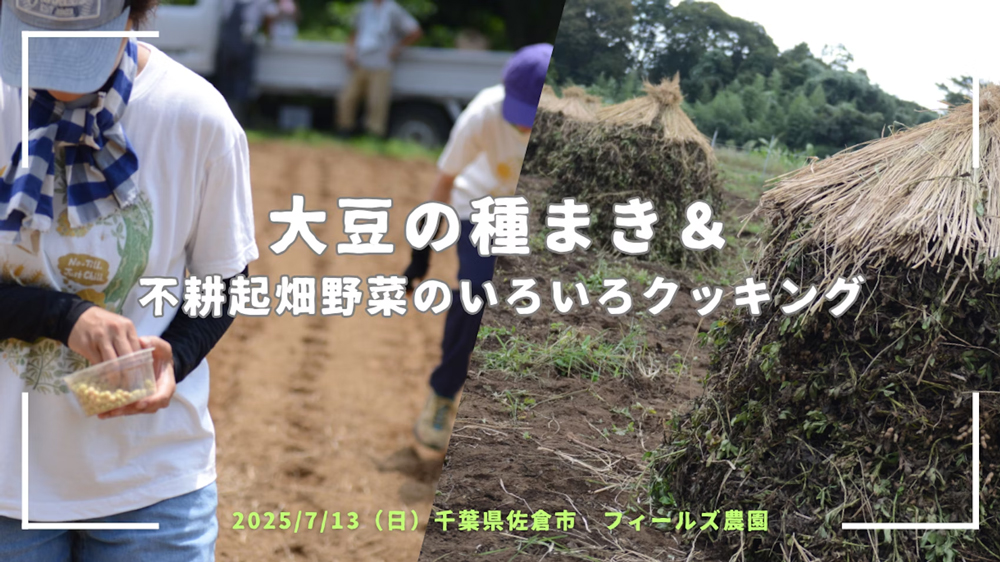 佐倉市内で無農薬・無化学肥料・不耕起栽培で大豆を育てているフィールズ農園で開催される大豆の種まきです。